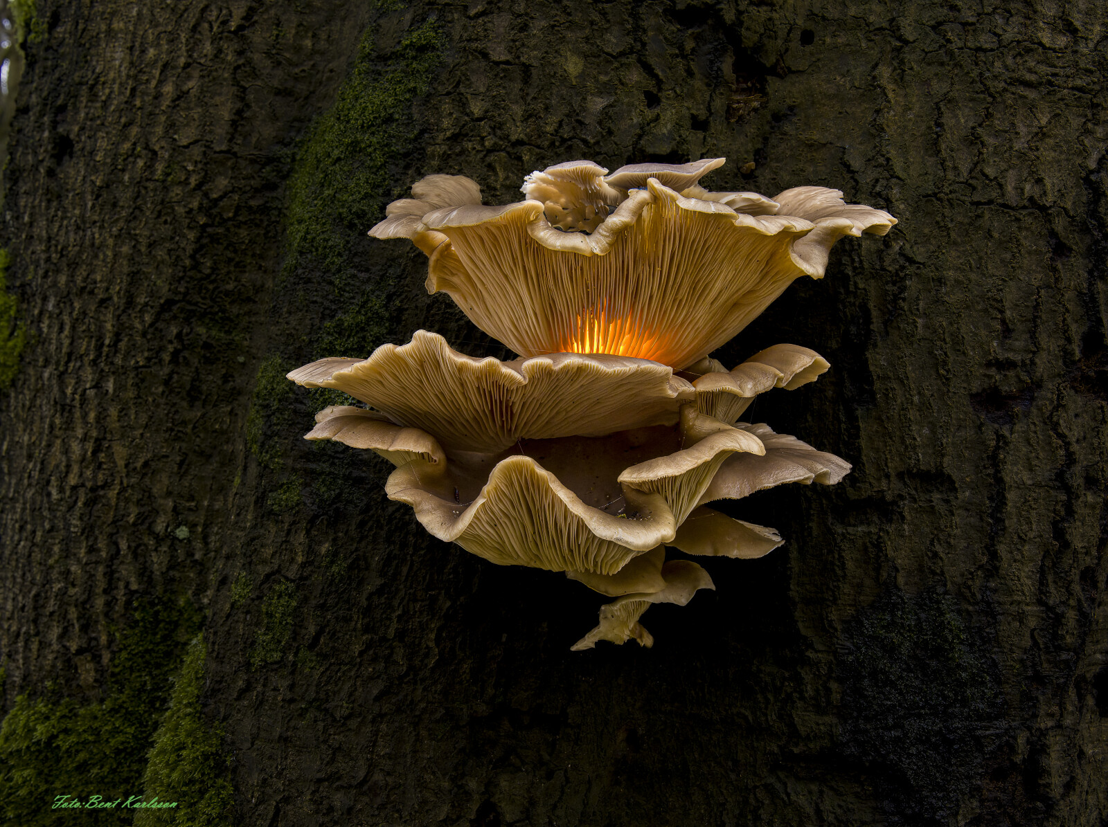 Almindelig østershat oplyst med lille lampe