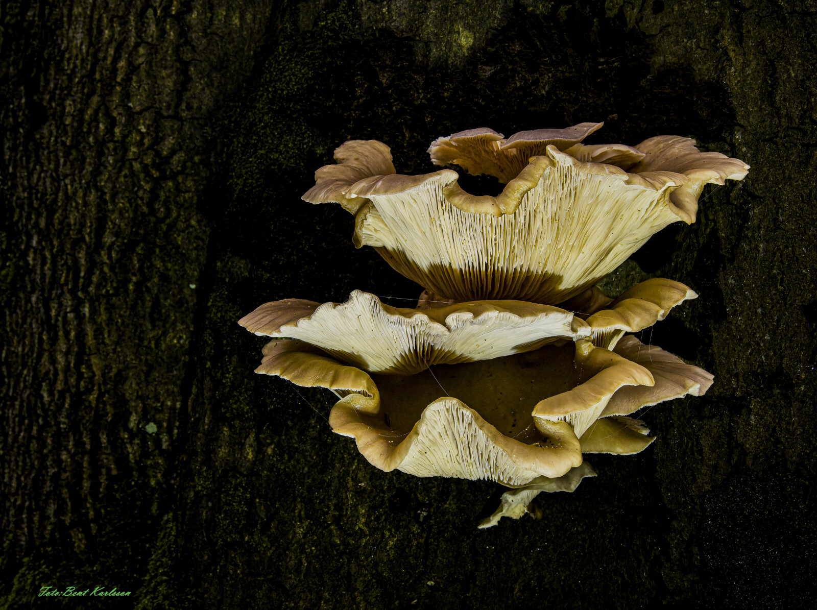 Almindelig østershat på bøgestamme.