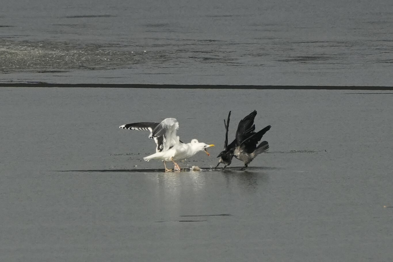 Billeder er taget ved Randsfjord hvor mågen havde fanget en stor karpe.