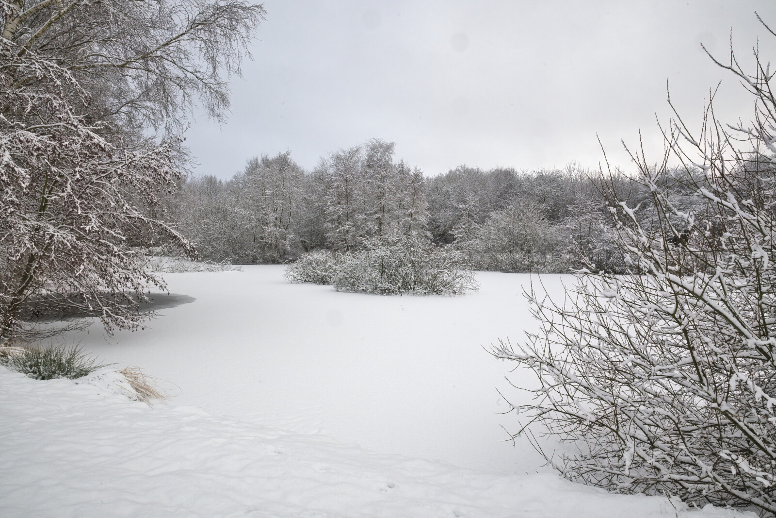 et vinter billede fra en lille sø
