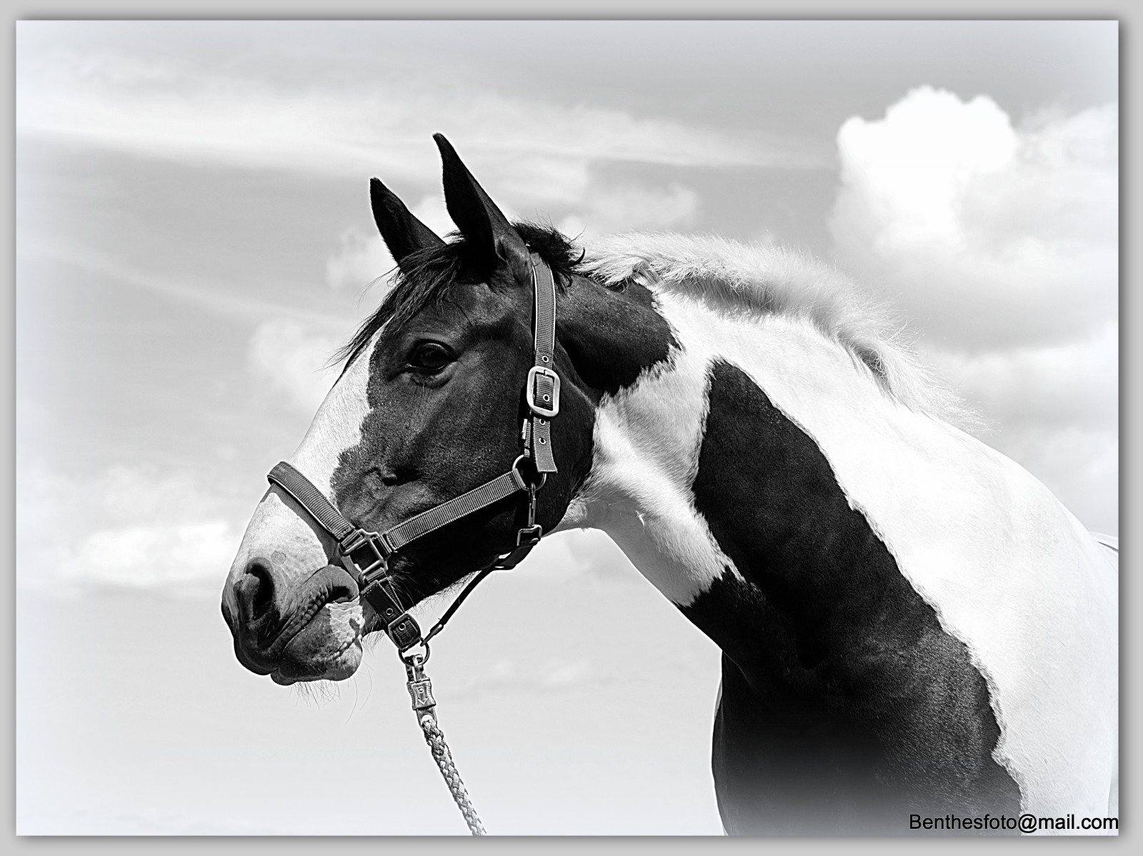Jamen det er et rigtig fedt sort/hvid billede Benthe, det kan jeg virkelig rigtig godt lide. Hvis jeg skulle ønske noget, kunne det være et lille "blink" i hestens øje, da det nu er lidt mørkt og svært at se.. men det er dog en bagatel - Ellers et rigtig flot billede :D