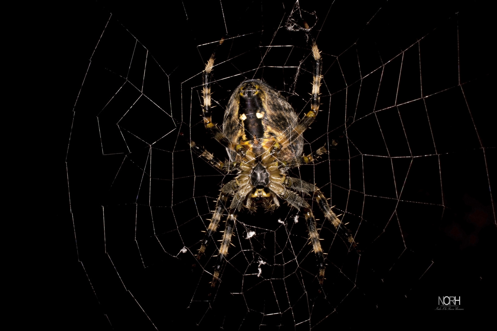 Første billede fra turen til Blåvand, er en giga-stor korsedderkop fra undersiden.