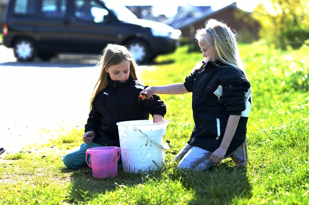 Enkelt billede af pigerne der ser på dagens krabbe fangst.rnBilledet er med vilje "overstyret" ret voldsomt... gver en sjov effekt efter min mening
