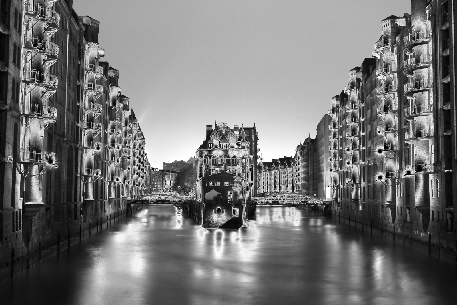 Speicherstatt som sort hvid soliration