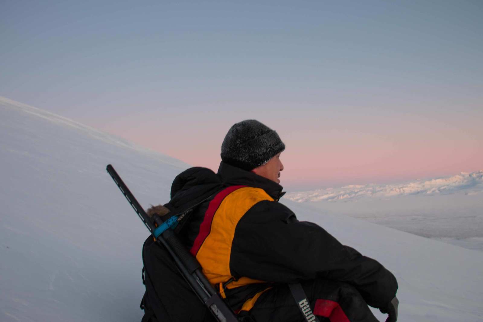 På rype jagt med Mikkel, vi holder en lille pause midt ½ vejs oppe af fjeldet. (Det gav ingen aftensmad).