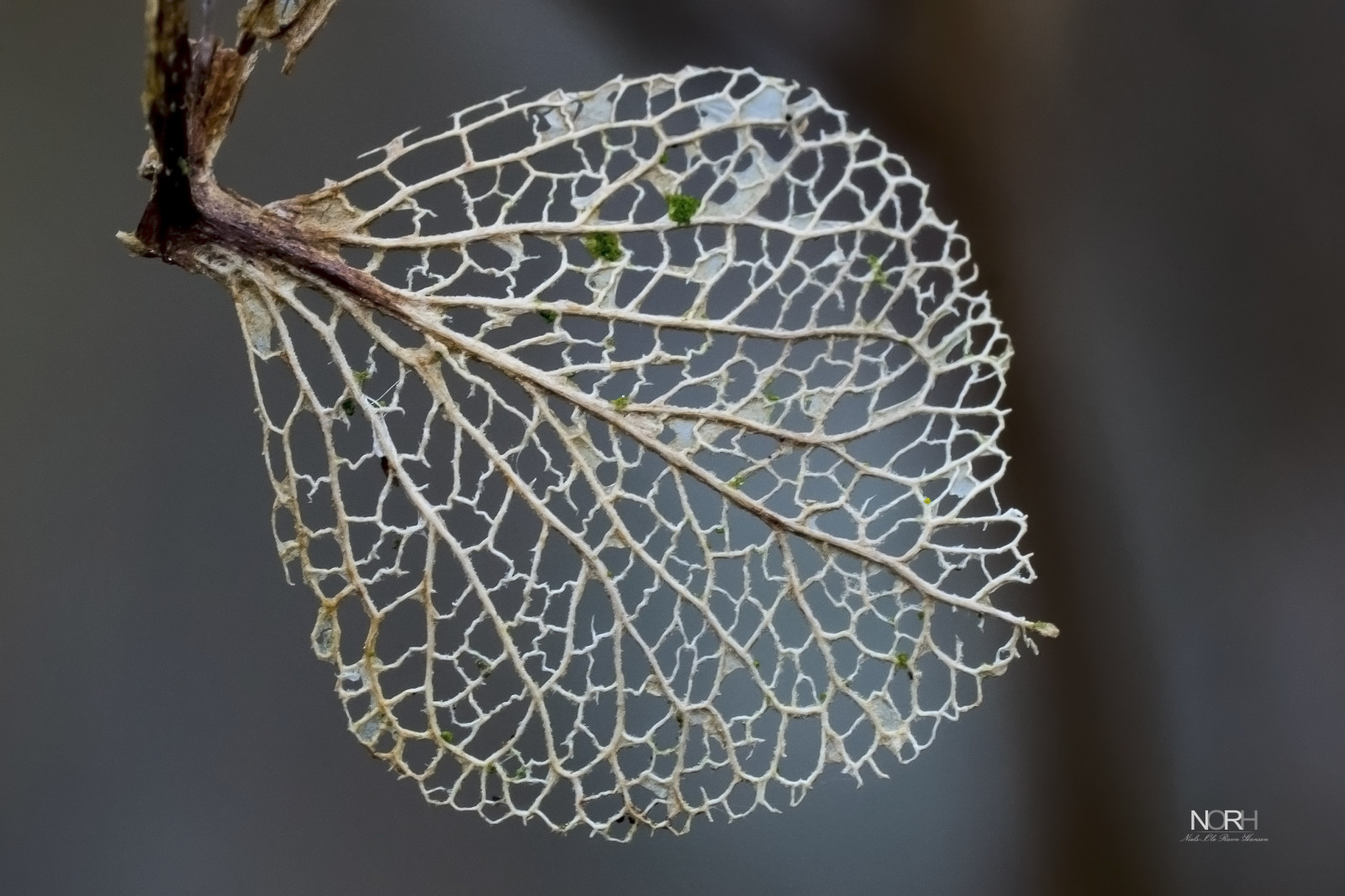 Skelettet af et blad fra Hortensia-blomsten, viser med al tydelighed hvor kompleks og vidunderlig sammensat moder natur den er, når tingene bliver vist som makrobilleder.