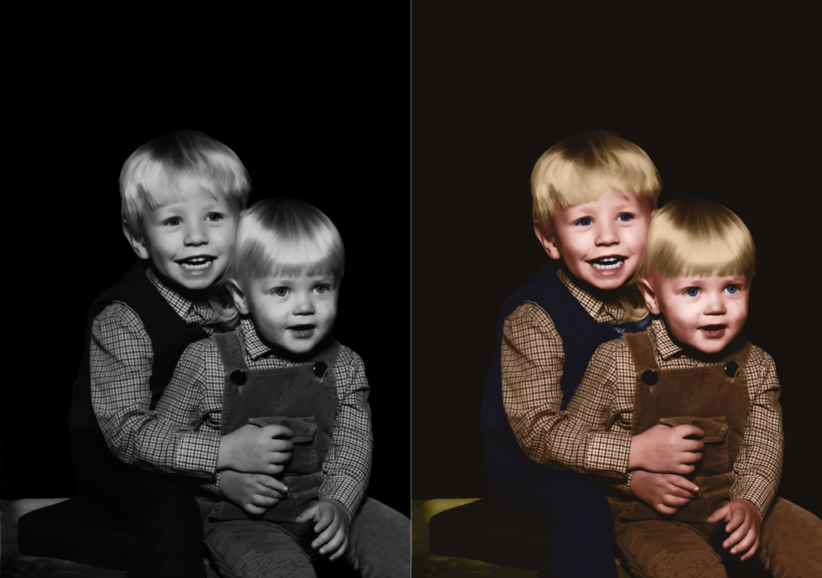 dette er mit forsøg at farvelægge et gamle billede af min bror og jeg hvis vi vil se hvordan det så ud før det blev sort og hvid så kik på billede hos min far Steen Hansen