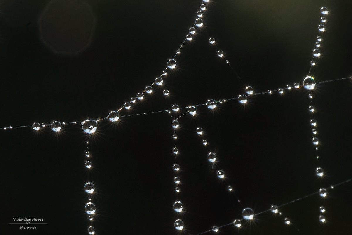 Dråber i et spindelvæv er altid spændende foto objekter