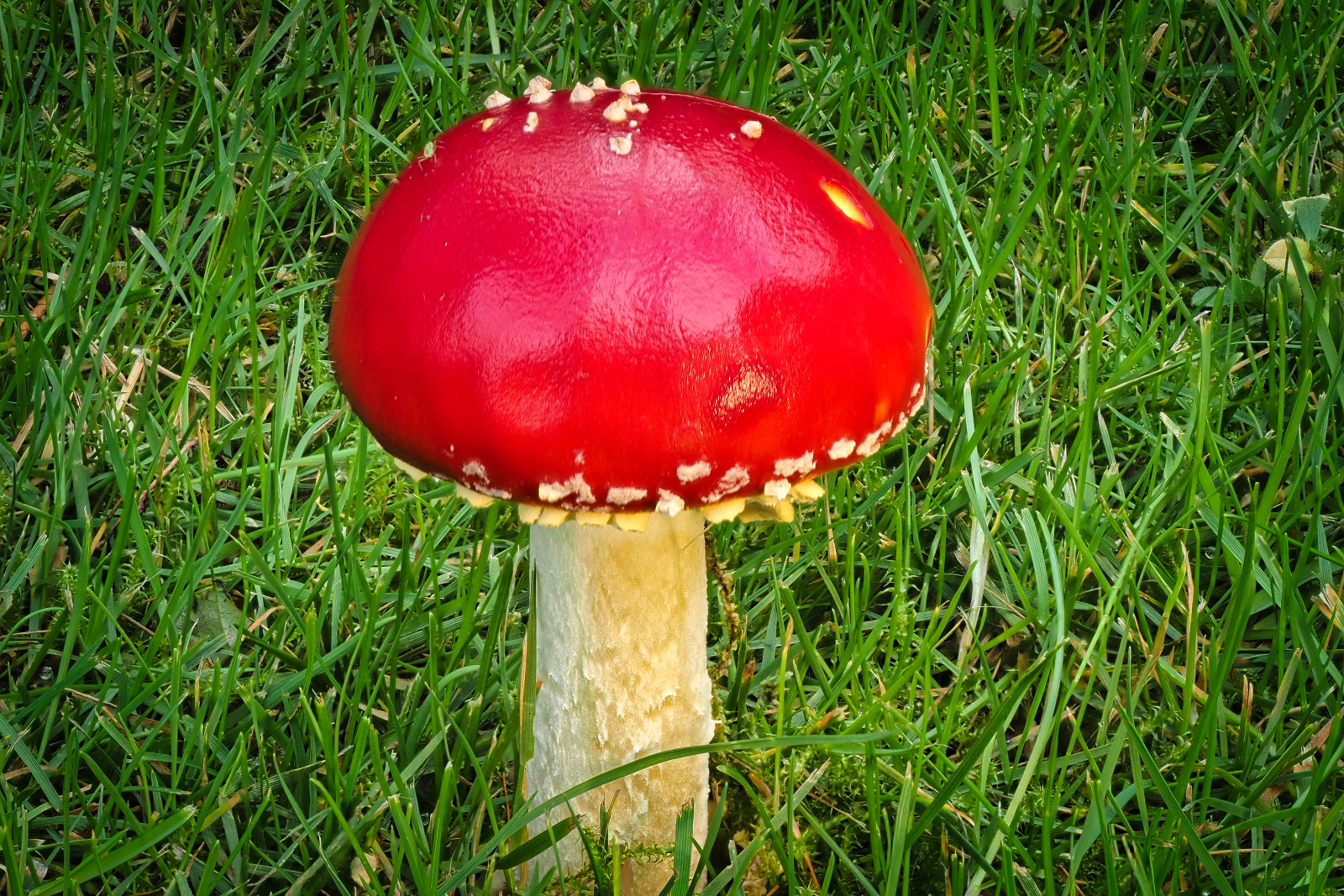 En fluesvamp, taget i haven. For 3 dage siden var der ingen, så de gror hurtigt.